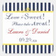 "L'amour est doux ! S'il vous plaît prendre un plaisir!" est le texte sur ce bateau d'inspiration nautique moderne et abordable 1,5" carré en forme marine bleu et blanc rayures bonbons buffet de mariage favker avec un rouleau jaune le long du dessus et rouge et de lettres navy qui correspond à la faire-part de mariage ci-dessous. Il y a d'autres formes et tailles que vous pouvez choisir. ****S'IL VOUS PLAÎT être prudent si vous changez la forme de l'autocollant, car des parties de la conception et/ou du texte peuvent être coupées car la limite de sécurité du texte est assez grande. Si vous changez de police, ils peuvent également s'étendre dans la limite sécurisée, donc il est préférable de me contacter pour faire une autre forme pour vous. Si vous avez besoin d'aide, envoyez un courriel à niteowlstudio@gmail.com.