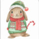 Adorable holiday bunny illustration featuring a cozy sweater, santa hat, and striped candy cane. perfect for christmas cards, stickers, and seasonal gifts with a whimsical touch.