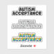 Un autocollant avec les mots "Autism Acceptance" 3 fois. Un en noir solide, un en blanc avec un contour noir et un en arc-en-ciel.
