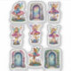 Une esthétique enchantée et douce comme un murmure définit cette feuille d'autocollants éphémères pour scrapbooking, présentant une collection de découpes de portes de fées qui semblent avoir été directement arrachées à un royaume forestier caché. Chaque porte miniature est fabriquée avec des cadres en pierre patinée, leurs bords texturés donnant l'impression de chemins anciens creusés dans des collines mousses. Des vignes de roses grimpent gracieusement le long des côtés, leurs fleurs s'épanouissant dans des teintes douces et romantiques qui ajoutent une touche de fantaisie délicate à chaque vignette.
