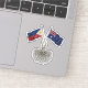 This kiss-cut vinyl sticker is designed to celebrate and prominently display Filipino-Australian dual identity and heritage. The design typically merges the flags of the Philippines (blue and red fields with a white triangle containing a sun and three stars) and Australia (the blue field with the Union Jack and the Commonwealth Star, plus the Southern Cross constellation), symbolizing a strong connection to both the Southeast Asian nation and their home in Australia.