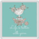 L'illustration en gros plan montre une fille avec des pilons fixés avec des aiguilles de tricot enroulant une boule de fil. "La vie est meilleure avec le fil" texte blanc sur arrière - plan turquoise