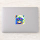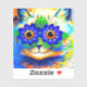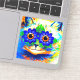 Autocollant représentant la peinture animale de Louis Wain Cat Flower Eyes (1860-1939). Un chat arc-en-ciel grince largement. Des fleurs bleues recouvrent ses yeux. Un cadeau merveilleux pour l'art amoureux des chats et anglais.