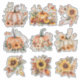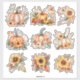Célébrez le coeur de l'automne avec cette collection d'autocollants en aquarelle de 9 pièces, avec des citrouilles ornés de tournesols, des feuilles saisonniers et des accents floraux dans des teintes d'automne riches. Chaque illustration reflète l'esprit cosy du temps de récolte, parfait pour les planificateurs, les cartes de voeux et le décor festif. Avec des oranges chaudes, des jaunes dorés et des verts rustiques, ces designs apportent une touche douce et d'inspiration nature à vos projets créatifs. Idéal pour l'artisanat de Thanksgiving, les albums familiaux, et tous ceux qui aiment les fleurs d'automne.