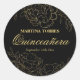 Conçu pour votre Quinceañera ou Sweet 15 Celebration. Décorez vos enveloppes, faveurs, cadeaux et envelopper avec ces élégants stickers Quinceanera. Un design moderne en noir et or avec des arrangements floraux esquissés, pour encadrer votre texte personnalisé. Le texte dit "[nom de coing] Quinceañera [date]" dans la calligraphie soignée mais décorative et une police serif classique. Le modèle est configuré pour que vous puissiez modifier (ou supprimer) tout ou partie de l'exemple de libellé. Veuillez naviguer dans notre magasin pour coordonner les articles pour votre fête d'anniversaire Quinceanera.