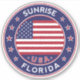 Sunrise Floride, autocollant Sunrise avec drapeau américain, forme arrondie. Villes de la collection Florida