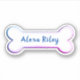 forme d'os de chien blanc avec bord arc-en-ciel et nom. Le nom/le texte peut être modifié.