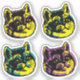 Mème de chat mignon vintage pop art autocollants - les quatre chatons. Super décal félin fenêtre pour les magasins de chat et les cliniques de chat qui aiment le pop art américain des années 1960 et les filles folles de chat et les papas de chat.