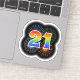 Ce design autocollant amusant et vibrant comprend un motif coloré et inspiré par des feux d'artifice festifs, ainsi que le numéro "21" avec un arc-en-ciel multicolore comme spectre ou motif dégradé. Un autocollant comme celui-ci peut être utilisé pour célébrer le vingt et unième anniversaire de quelqu’un, ou peut-être le vingt-et-unième anniversaire d’un couple de mariages, ou un autre 21e événement. [~Z0000362]