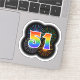 Ce design autocollant amusant et dynamique présente un motif coloré inspiré par des feux d'artifice festifs éclatants, ainsi que le numéro "51" avec un spectre multicolore d'inspiration arc-en-ciel ou motif dégradé. Un autocollant excitant comme celui-ci pourrait peut-être être utilisé pour célébrer le cinquante et unième anniversaire de quelqu’un, ou peut-être le cinquantenaire d’un couple de mariages, ou un autre 51e événement. [~Z0000362]