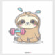 Sticker Funny Chibi Sloth Workout Cute Kawaii Gym Cartoon