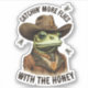 Une grenouille amusante portant un casquette cowboy attrapant des mouches avec du miel sur cet autocollant de style vintage occidental pour votre boisson, voyage, bagages, livres, doohickeys électroniques et plus encore, personnalisée avec votre choix de polices et de texte.