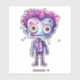 Collier autocollant avec une jolie illustration. Monstre Frankenstein aux cheveux roses et violets et costume et cravate en dapper.