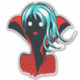 Vampire collant fille avec une illustration numérique d'un drôle de personnage mort-vivant à la peau foncée avec des yeux brillants, cheveux bleus, ventilateurs et cape rouge vibrante.