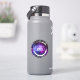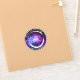Créez votre propre autocollant de logo commercial photo de l'espace céleste violet. Les couleurs principales de la photo arrière - plan sont le noir, le bleu, le violet, la lavande et le blanc dans les étoiles et la brume. Ajoutez le logo de votre entreprise et créez un autocollant circulaire. Personnalisez ou supprimez les informations textuelles. Le bord peut être blanc ou transparent. Vérifiez la description à gauche.