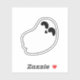 Un autocollant simple et adorable en noir et blanc avec un fantôme minimaliste aux yeux expressifs et une petite bouche, parfait pour ajouter une touche éffrayante mais mignonne aux métiers d'Halloween, aux carnets ou aux designs numériques.