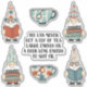 Un pack de 7 autocollants propose des gnomes avec des livres, des tasses de thé et une citation de C.S. Lewis.