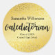 Célébrez la réussite géante de votre diplômé avec cet autocollant de graduation en or. Il a également des confettis comme élément de décoration supplémentaire. Valedictorian est écrit une grande police formelle au centre de l'autocollant d'or. Le nom du diplômé est au-dessus. La classe de 2018 et le lycée est ci-dessous.