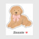 This adorable vinyl sticker features a sweet golden doodle wearing a pink gingham bow—perfect for laptops, water bottles, notebooks, and more. Durable and water-resistant, it’s a cute way to add a little puppy love to your everyday essentials or party favors.