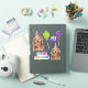 La colle n'est pas très collante. Le point positif est que le collant s'enlève facilement. Le point négatif est que les côtés "frisent" un peu, je l'ai collé sur mon ordinateur et quand je le met et l'enlève de mon sac, ça abime un peu les rebords. Mais ça tient quand même depuis quelques semaines sans problème, c'est juste les côtés qui sont un peu abimés. Je suis très satisfaite de la qualité de l'impression. Les couleurs sont fantastiques et tiennent bien le coup.