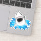 Un grand requin blanc et drôle avec ses mâchoires agape les vagues prêtes à mordre. Un cadeau amusant pour nageur, voyage de pêche en haute mer, plongeur sous-marine.