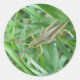 Ce magnifique ensemble d'autocollants ronds présente une macro photo détaillée d'une petite sauterelle verte avec des marques marron en motte sur l'herbe. Sur la photo vous pouvez voir le détail des jambes articulées, des antennes longues et des yeux noirs et or de la sauterelle.