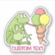 Une grenouille souriante vole un cône de glace avec sa langue. Texte personnalisé.