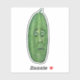 Ce sticker en vinyle a un gros cornichon vert drôle avec une tige et un visage avec une expression étonnée.