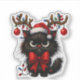 Sticker Grumpy Christmas Cat with Santa Hat and Antlers