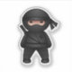 Adorable petit ninja à la fois effrayant et gaie est habillé en tenue noire et portant du katana - l'épée japonaise traditionnelle.