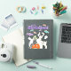 La colle n'est pas très collante. Le point positif est que le collant s'enlève facilement. Le point négatif est que les côtés "frisent" un peu, je l'ai collé sur mon ordinateur et quand je le met et l'enlève de mon sac, ça abime un peu les rebords. Mais ça tient quand même depuis quelques semaines sans problème, c'est juste les côtés qui sont un peu abimés. Je suis très satisfaite de la qualité de l'impression. Les couleurs sont fantastiques et tiennent bien le coup.