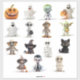 Cette feuille d'autocollant comporte des caractères super mignons d'halloween, dont : chats noirs, fantômes, sorcières, momies, épouvantails, squelette, gremlin et citrouille.