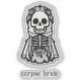 Il s'agit d'un joli autocollant d'halloween "sur le thème de l'horreur" avec l'illustration d'une mariée squelette avec un texte personnalisable.
