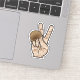 * Camouflage military pattern in hand peace sign with helmet over the fingers.