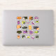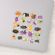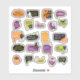 Des autocollants d'Halloween éffrayants et amusants, avec une sorcière, un chat noir, une araignée, une toile d'araignée, une chauve-souris, un citrouille, un crâne et des os croisés.