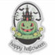 Il s'agit d'une jolie conception autocollante faite d'une figure verte jack-o-lanterne, d'un manoir hanté, de monstres éffrayants et de chauves-souris. Vous pouvez customiser le texte par défaut "happy halloween".