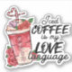 Cute "Le café glacé est ma langue d'amour" coeurs roses et rouges et autocollant de fleurs