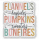 Ce design d'automne coloré et amusant présente une liste de favoris d'automne, dont "Flannels", "Hayrides", "Citrouilles", "Sweaters" et "Bonfires". Le texte est présenté dans une police majuscule et audacieuse, chaque mot étant rempli d'une teinte terreuse et chaleureuse différente, allant des roses douces aux oranges en passant par les verts et les bleus muets, qui capte parfaitement l'esprit cosy et vibrant de la saison. Les mots "hayrides" et "pull-overs" sont écrits dans un script fluide, ajoutant une touche d'élégance et créant un contraste agréable avec les caractères gras. Des fleurs décoratives encadrent le texte du script, ajoutant au charme et à l'attrait d'ensemble. Ce design est parfait pour l'automne.