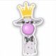 Un décalcomanie vinyle avec un lama géant qui souffle une grosse bulle rose. Portant une couronne d'or et une cravate d'arc noir.