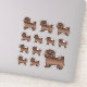 Dessin original de Destei illustrant une jolie robe brune chocolat Bichon Havanais / Chien de race Havanais. La conception est placée 12 fois sur la feuille en trois tailles différentes. Il y a un chien plus gros, trois chiens de taille moyenne et huit chiens de petite taille.