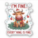 Sticker I'm Fine Everything is Fine Christmas Highland Cow