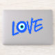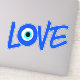 Colorful bleu vif LOVE autocollant. La lettre O est créée à l'aide d'un symbole grec OE. The Eye est considéré comme un porte-bonheur ou un talisman.
