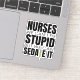 Ajoutez un peu d'humour à vos effets personnels avec notre autocollant "Nurses : We Can't Fix Stupid, But We Can Sedate It". Ce discours plein d'esprit est parfait pour les infirmières avec un sens de l'humour. Que vous décoriez votre ordinateur portable, votre bouteille d'eau ou votre carnet, cet autocollant est une façon amusante de montrer votre fierté en soins infirmiers. Fabriqué avec du vinyle durable et doté d'un design ludique, il est sûr d'obtenir quelques rires. Sticlez-le sur vos articles préférés et partagez un petit rire avec vos collègues infirmières - parce que parfois un peu d'humour est le meilleur médicament!