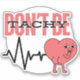 Apportez un sourire à votre journée avec notre autocollant hilarant et astucieusement conçu "Ne sois pas Tachy"! Doté d'un personnage en forme de coeur avec une ligne EKG ringarde juste derrière, cet autocollant est un clin d'oeil ludique à ces pulls (tachycardie) que les infirmières connaissent trop bien.