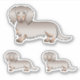 Illustration originale de Destei d'une jolie Isabella cheveux longs et couleur tan Dachshund race chien. La conception est placée trois fois sur la feuille en deux tailles différentes. Il y en a une plus grande et deux plus petites.