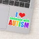 Un bel autocollant de sensibilisation sur l'autisme aux jolies couleurs arc-en-ciel pour les amis et la famille d'une personne autiste. J'aime quelqu'un avec l'autisme. Un cadeau mignon pour une mère autiste, papa, grand-mère ou grand-père.