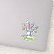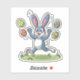 Passez aux festivités de Pâques avec notre adorable sticker Bunny de Pâques avec un mignon lapin jonglant des oeufs colorés de Pâques avec finesse et flair.