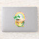 Autocollant de contour avec une illustration adorable représentant un pot vert et or souriant avec un arc-en-ciel mignon,