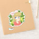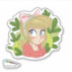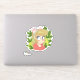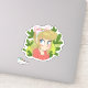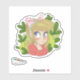 Petit autocollant mignon d'une illustration de fille de dessin animé avec un ruban rose et entouré de feuilles vertes. Idéal pour le scrapbooking, la planification et ceux qui aiment les autocollants mignons.