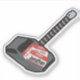 Cet autocollant photo Mjolnir (le marteau de Thor) avec "Bonjour mon nom est" autocollants pour identifier le marteau. Les étiquettes sont Mjolnir, Mew Mew (surnom de Darcy pour le marteau) et Jonathan (devin de Paul Rudd sur le nom du marteau dans une interview).
